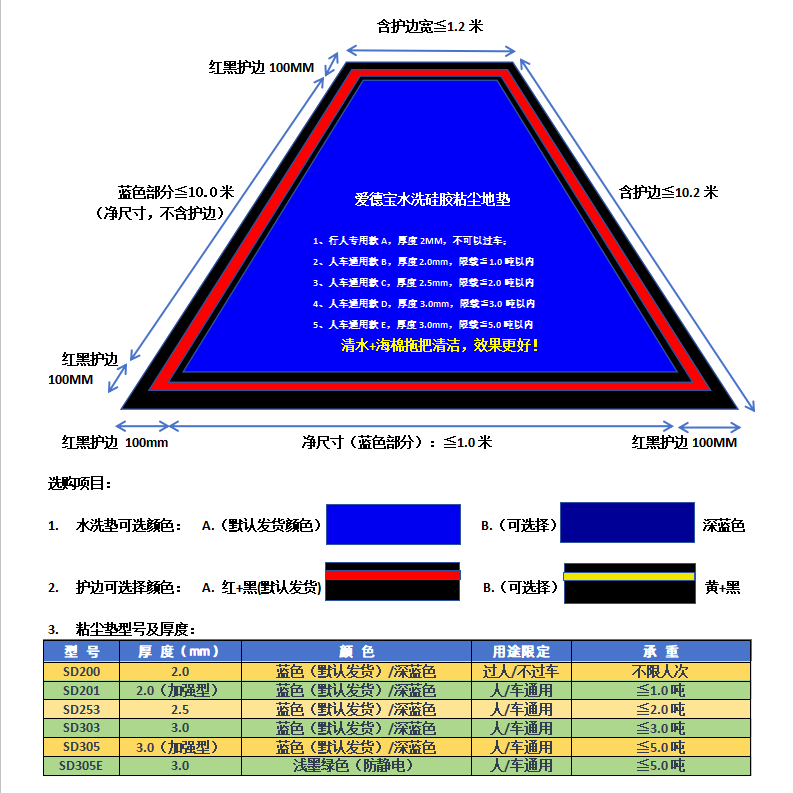 本产品,严禁用腐蚀性试剂清洁,严禁用锐器剌伤表面,本产品不限制一次性使用人数,但强烈建议人数多情况下,铺设面积及通道铺设长度加大尺寸面积,以保证相应的清洁效果;